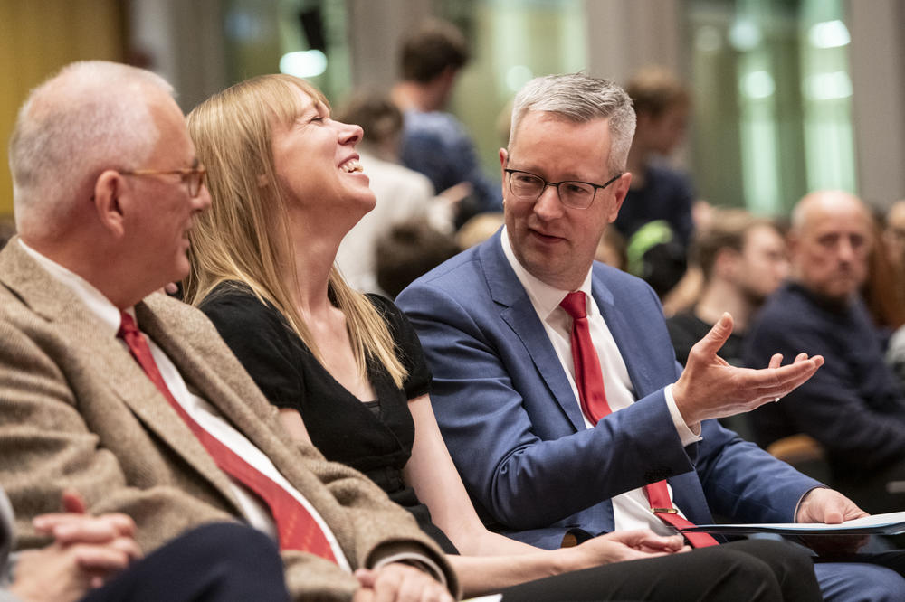„Alle Versuche, Dunkle-Materie-Teilchen aufzuspüren, sind aber bislang gescheitert“, hatte Hermann Nicolai vorab in seiner wissenschaftlichen Einführung zur Lecture erörtert. Er ist Direktor am Max-Planck-Institut für Gravitationsphysik, das auf den Spuren Einsteins dessen Relativitätstheorie weiterdenkt. Die Max-Planck-Gesellschaft, die die wissenschaftliche Tradition auf dem Dahlemer Campus mit der Freien Universität Berlin teilt, ist seit 2017 Partner der Einstein Lecture.