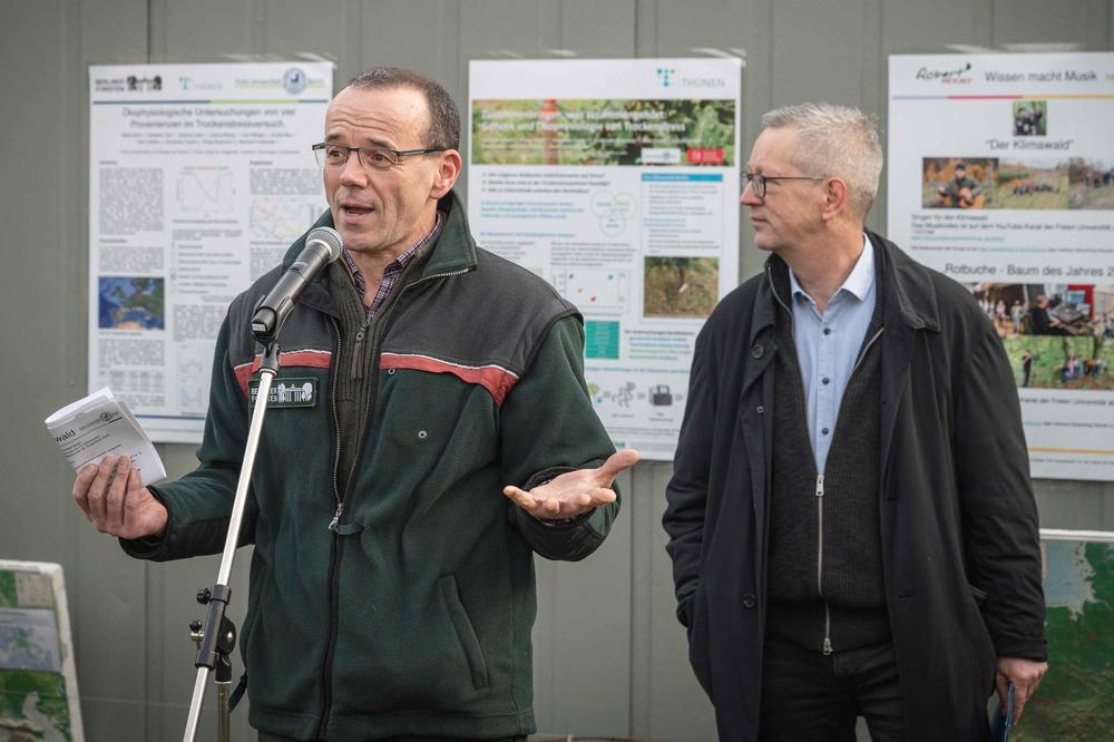 Die Freie Universität Berlin begeht ihren 75. Geburtstag nachhaltig: Universitätspräsident Professor Günter M. Ziegler, die Ernst-Reuter-Gesellschaft der Freunde, Förderer und Ehemaligen e.V. und Manfred Forstreuter vom Institut für Biologie, Leiter des Forschungsprojekts „Klimawald Berlin“, hatten am vergangenen Sonnabend auf die Freiland-Forschungsfläche im Berliner Grunewald eingeladen, um insgesamt 75 Rotbuchen aus dem europäischen Verbreitungsgebiet zu setzen.
