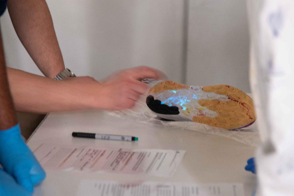 Jedes Team hat sich einen von fünf Versuchen ausgesucht, etwa Textilien mit Naturfarben färben oder ein kriminologisch angelegtes Experiment, bei dem Schüler*innen Blutspuren auf einem Turnschuh und einem Handschuh nachweisen und den Tathergang rekonstruieren. Oder ein Szenario mit einem Giftanschlag, bei dem die Klasse mögliche Stoffe eingrenzt – die Lösung war Kupfersulfat, das im zweiten Schritt aus dem „Trinkwasser“ ausgefällt, also als fester Stoff sichtbar gemacht, wurde, um es unschädlich zu machen.