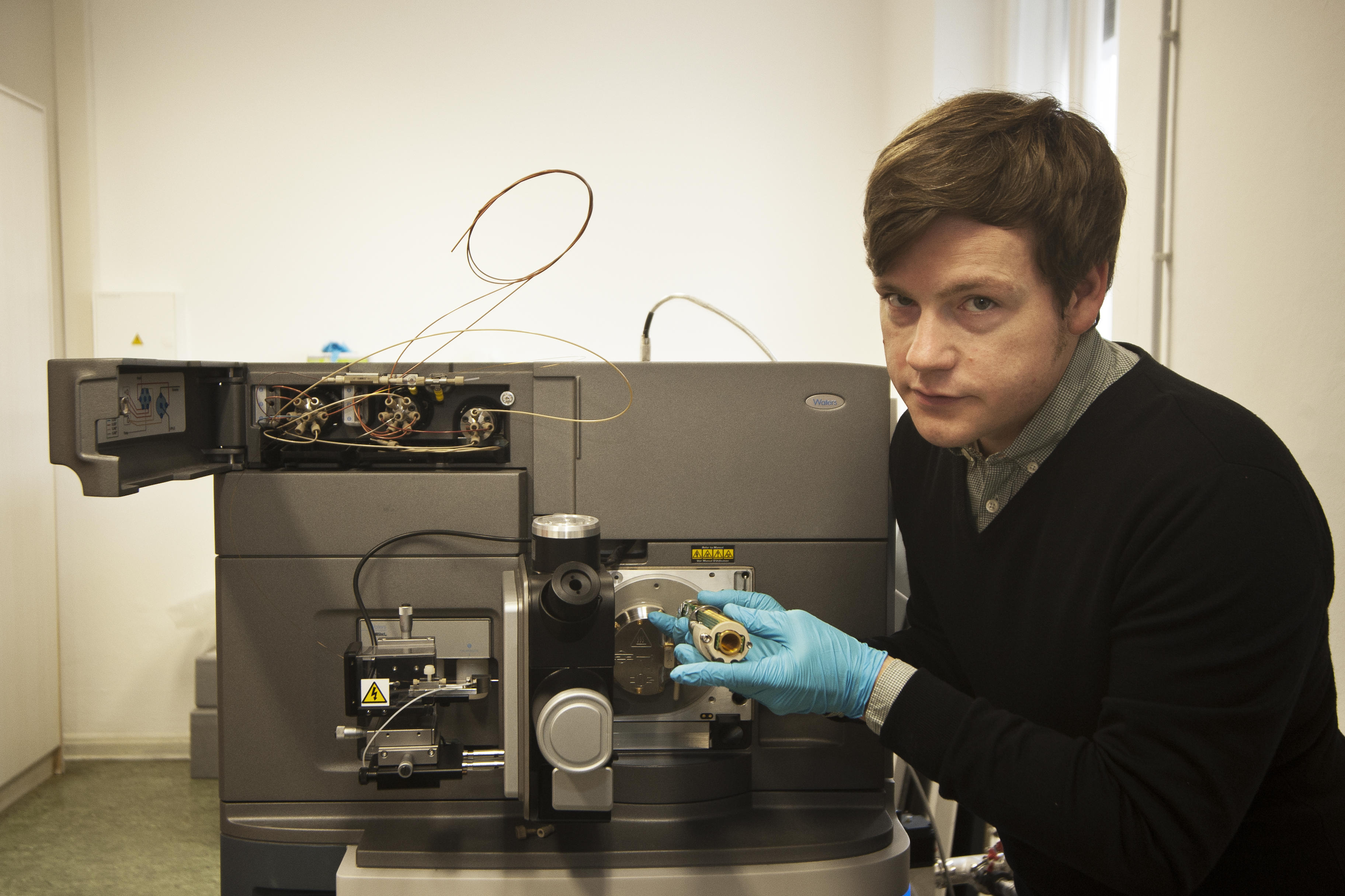 Prof. Dr. Kevin Pagel with the ion mobility mass spectrometer used for his research
