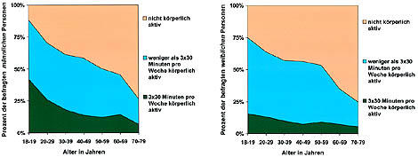 Wie sich der Umfang des Sportengagements vom frühen Erwachsenenalter bis ins hohe Erwachsenenalter verändert, veranschaulichen Daten aus dem Bundesgesundheitssurvey (siehe Abbildung 1: Mensink, 2002).