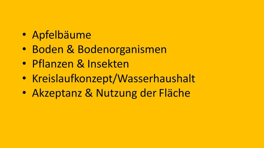 Herzstück des FUturist-Projekts war ein 2-semestriges transdisziplinäres Seminar im ABV-Bereich Nachhaltige Entwicklung. Gemeinsam mit Studierenden und Fachexpert:innen aus dem Fachbereich Geowissenschaften und Biologie sowie mit 14 weiteren Expertpert:innen aus der Stadtgesellschaft, haben wir in einem co-kreativen Miteinander konkrete Maßnahmenvorschläge erarbeitet, wie wir die Apfelbäume und den Boden vitalisieren und die Artenvielfalt von Tieren und Pflanzen fördern können.